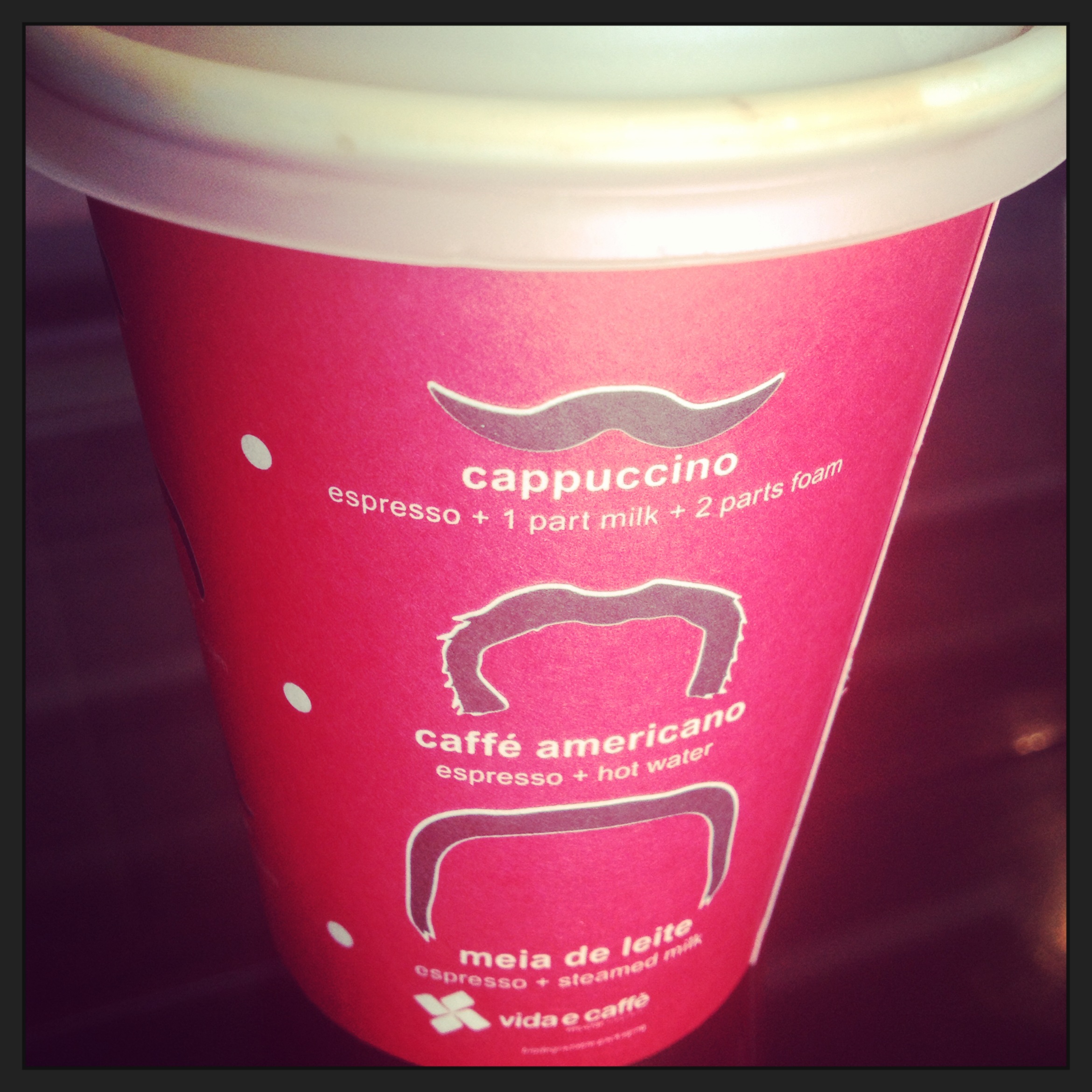 Early morning cappuccino from Vida. How cool is the paper cup?