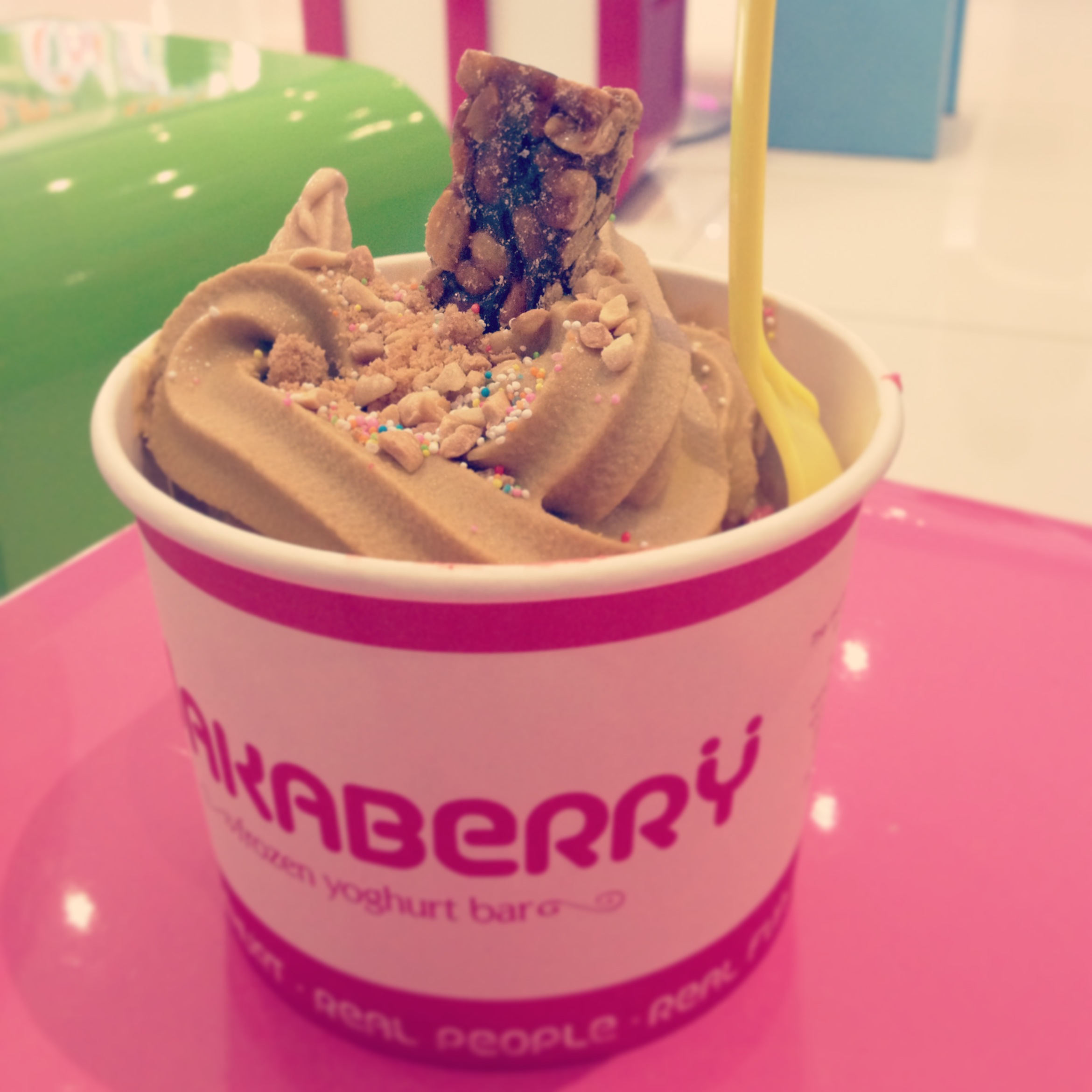 My peanut butter obsession is officially bordering on addiction. I met up with a friend to indulge in some Wakaberry froyo, and guess what flavour had made the weekly selection? Correct. Peanut butter. I’ll admit, at first I was skeptical but after I had dolled it up with fudge sprinkles, chopped peanuts (obviously!), hundreds & thousands and a piece of peanut brittle, I was converted. I absolutely love.