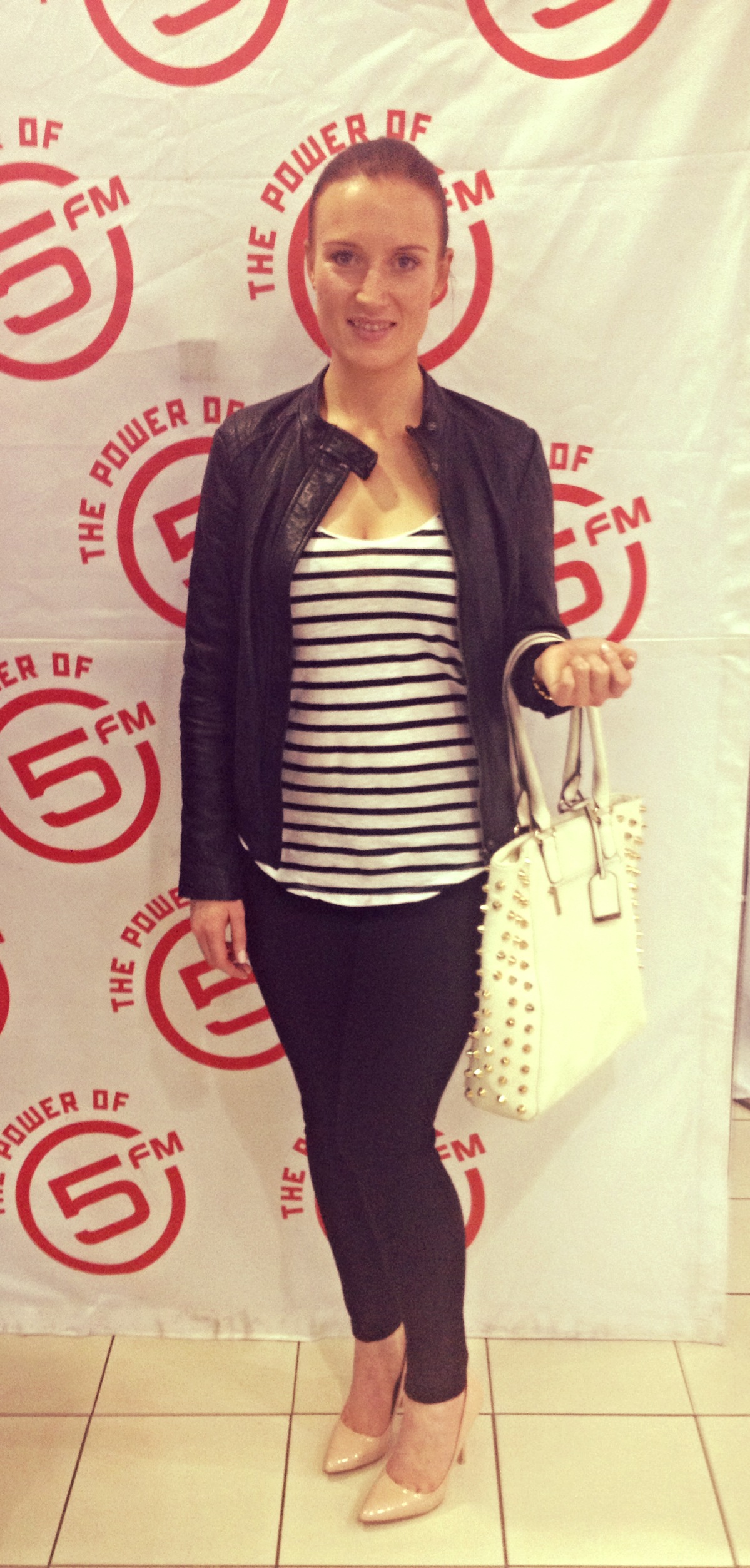 Leather jacket from Mango | t-shirt from Cotton On | Leggings and heels from Zara | bag from Call it Spring
