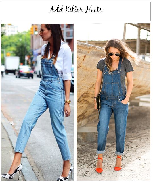 Back in the day you might have worn jellies or sandals with your dungarees. To pull them off fashionably as an adult, it’s all about wearing them with adult footwear. Team your dungarees with sleek stilettos, platforms, or wedges.