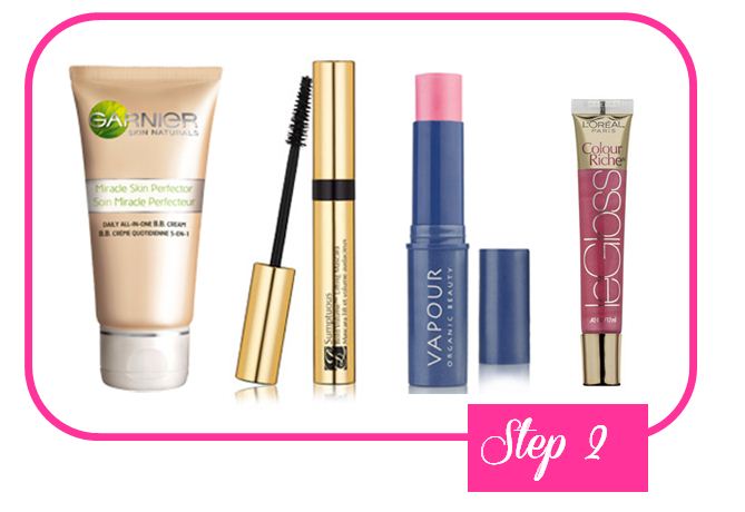Step 2: Get Gorgeous The good news is that you only need 4 things to get gorgeous in a flash: BB cream, blush, mascara and lip gloss. To begin, grab the BB cream (which is a moisturiser, sunscreen and foundation all in one) and apply all over your face, to give you some light coverage and to even out skin tone. You can apply an extra layer under your eyes (if you need it). Be gentle and pat lightly with your ring finger. Next, use a curling/volumising mascara of your choice (this is my favourite mascara). Finish off with some blush on the apples of your cheeks and swipe your lips with some gloss. If you can get a multitasking product that you can use on cheeks and lips, even better! I love Vapour Organic Beauty Blush in Crush (I got mine from the USA).