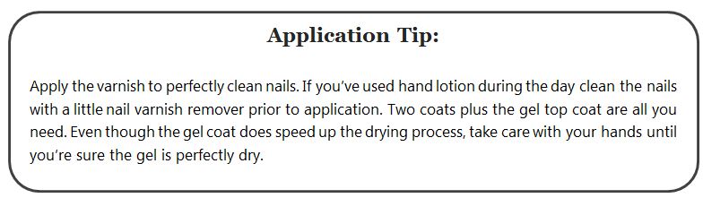 Magnifying agents crystallise the mesh curing colour to a rock-solid surface. Wait 30 seconds between the colour and the top coat application. The top coat formula contains crystal polymers that rise to surface to amplify colour, magnify shine and plump nail volume.