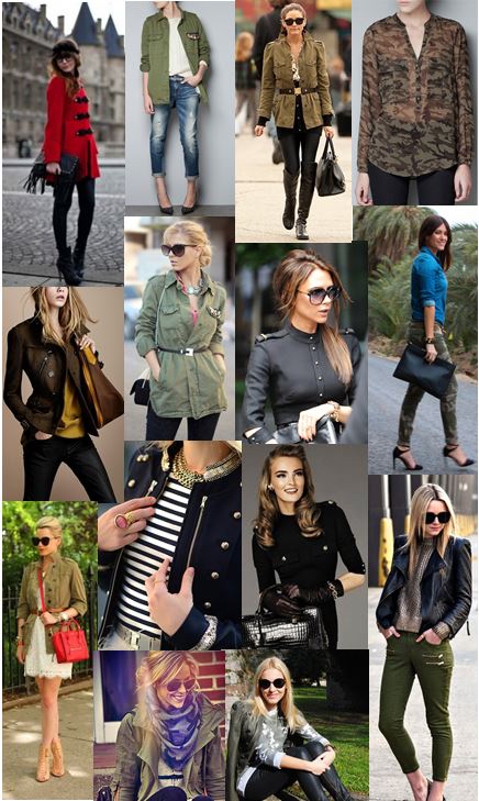 Fashion trends come and go and this season, the military trend is back. This trend is perfect for Winter: think classic, gold-button coats, jackets and military inspired skinny jeans with black, navy and olive being the colour of choice. Updates for 2013 include streamlined skinny cargos, camouflage, and feminine, tailored jackets, as well as jerseys and shirts with interesting epaulette detailing. The military inspired trend can be worn in many different ways, from full on army to a touch of military with your handbag or jacket.